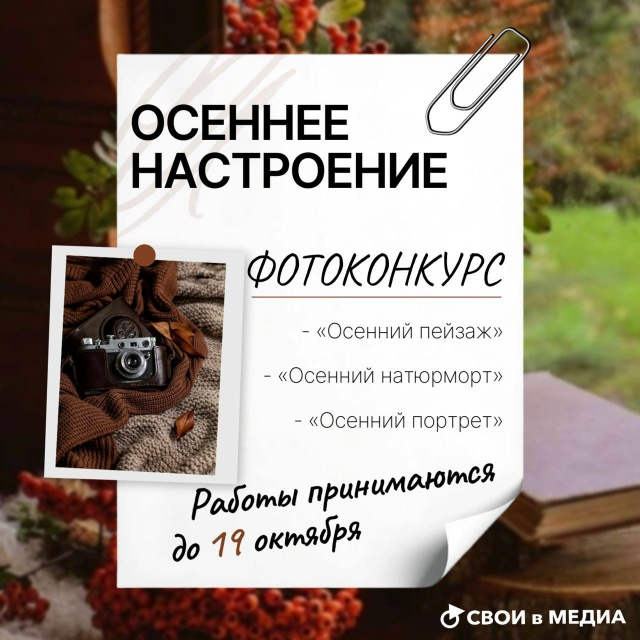 Медиацентр «СВОИ в Медиа» запускает фотоконкурс «Осеннее настроение» Если тебе от 14 до 35, у...