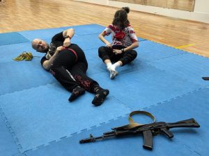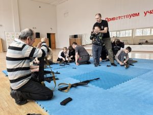 владение автоматом Калашникова, пистолетом Макарова (разборка/сборка, снаряжение магазина патронами, положения для стрельбы, смена магазина, тактические передвижения в группе, стрельба из пневматического оружия);