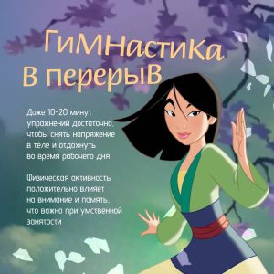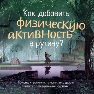 То, что для упражнений нужно выделять много времени только кажется. Достаточно двигаться в течение дня, чтобы поддерживать тело в тонусе. Примеры, как это сделать — смотрите в карточках.