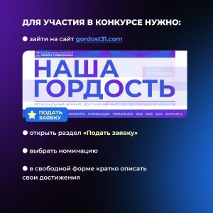 Приём заявок на региональный конкурс достижений «Наша гордость» стартовал в Белгородской области